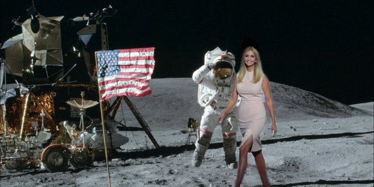 Στη διάσκεψη της Γιάλτας με τον Ουίνστον Τσόρτσιλ, τον Φραγκλίνο Ρούζβελτ και τον Ιωσήφ Στάλιν, στην αμμουδιά που μετατράπηκε σε πεδίο μάχης κατά τη διάρκεια της απόβασης στη Νορμανδία, στη Σελήνη: σε μια σειρά από φωτομοντάζ, ή μιμιδίων στην αργκό του Διαδικτύου, η 37χρονη Ιβάνκα Τραμπ εικονίζεται να παρεμβαίνει αυτόκλητη σε διάφορα ιστορικά γεγονότα.