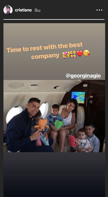 Ο Κριστιάνο μάλιστα μοιράστηκε με τα εκατομμύρια ακολούθων του στο Instagram φωτογραφία με την σύντροφό Georgina Rodriguez και τα παιδιά του λίγο πριν αναχωρήσουν για την μεσσηνιακή πρωτεύουσα