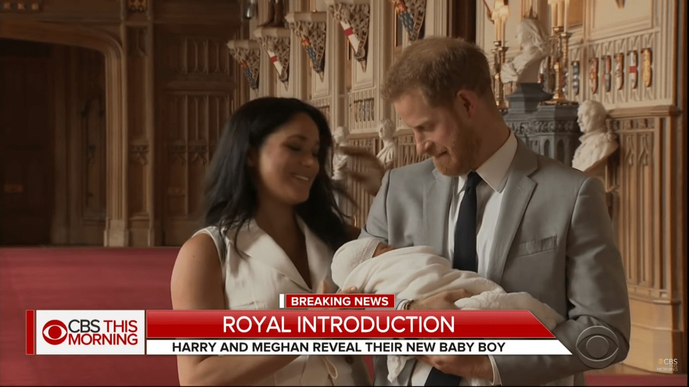 Ο πρίγκιπας Χάρι και η Μέγκαν Μάρκλ παρουσίασαν για πρώτη φορά σήμερα στους Βρετανούς το μωρό τους, το οποίο ήταν στην αγκαλιά τους, τυλιγμένο με μια λευκή κουβερτούλα και στο κεφάλι φορούσε λευκό σκουφάκι.