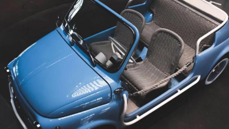 Οι νοσταλγοί του FIAT 500 θα παρατηρήσουν ότι το κλασικό εσωτερικό με δερματίνη έχει αντικασταθεί από καθίσματα από πλεχτό σκοινί.